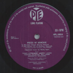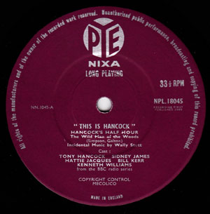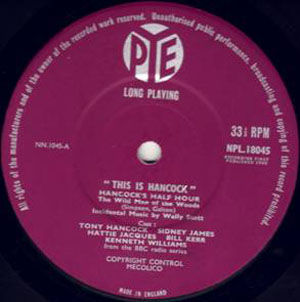 This is Hancock was first released in April 1960 just four months after the last Hancock’s Half Hour radio episode had been broadcast. The release contains edited (but virtually complete) radio episodes The Wild Man of the Woods and A Sunday Afternoon at Home. Released on the Pye Plum label, early versions were on the Pye Nixa label. This later changed to the later Pye plum coloured label with the final versions appearing with a cherry coloured label. A fantastic first release of Hancock’s Half Hour with briliant sleeve notes by Galton & Simpson.