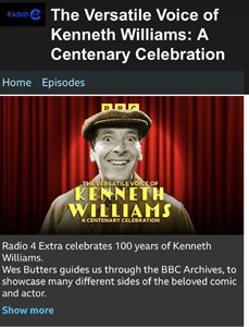 Fantabulosa! BBC Radio 4 celebrates Kenneth Williams with six hours of programmes which are repeated throughout the day. The suite of programmes starts at 6:00 AM and the suite is repeated again at 12:00 Noon, 6:00pm and 12:00 Midnight.