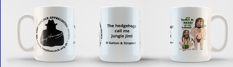 New Design. Time for tea? Your morning cuppa with a bowl of H-H-Harpers Cornflakes will taste much better in our exclusive 11 oz high quality white ceramic Hancock mug, featuring the THAS logo, Jon Street’s brilliant artwork depicting The Wild Man of the Woods image of The Lad and Kenneth Williams’ famous line, “The hedgehogs call me Jungle Jim!”